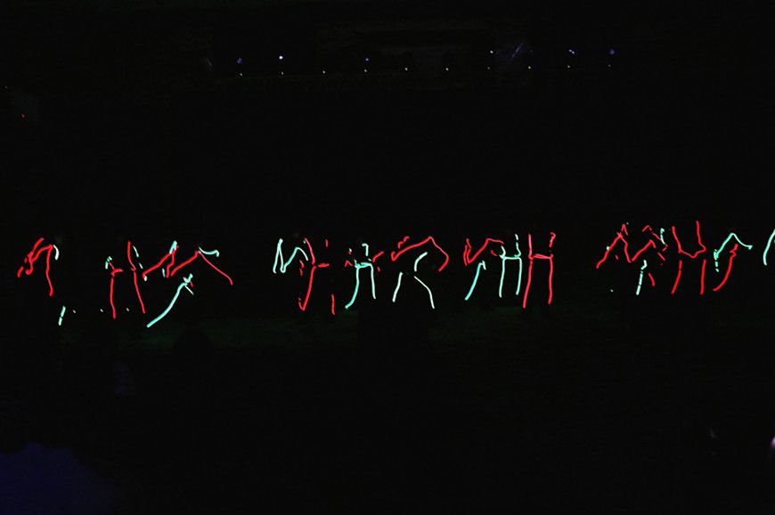 充滿了現(xiàn)代氣息的熒光舞《MH》。全場矚目下,黑暗中不斷閃現(xiàn)的M、H,令人眼花繚亂但已嫻熟無比的跑位,全部由業(yè)務二部和產品管理部的同事們私下N+1次排練的成果。