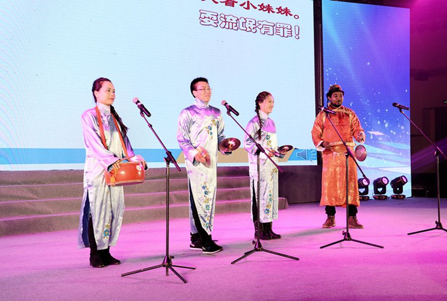 作為這次年會唯一的語言節(jié)目《三言兩語說萌恒》,來自遨森客服部的四位演員“中西合璧”,說跳結合,以詼諧幽默的表演方式演繹萌恒人自己的故事。