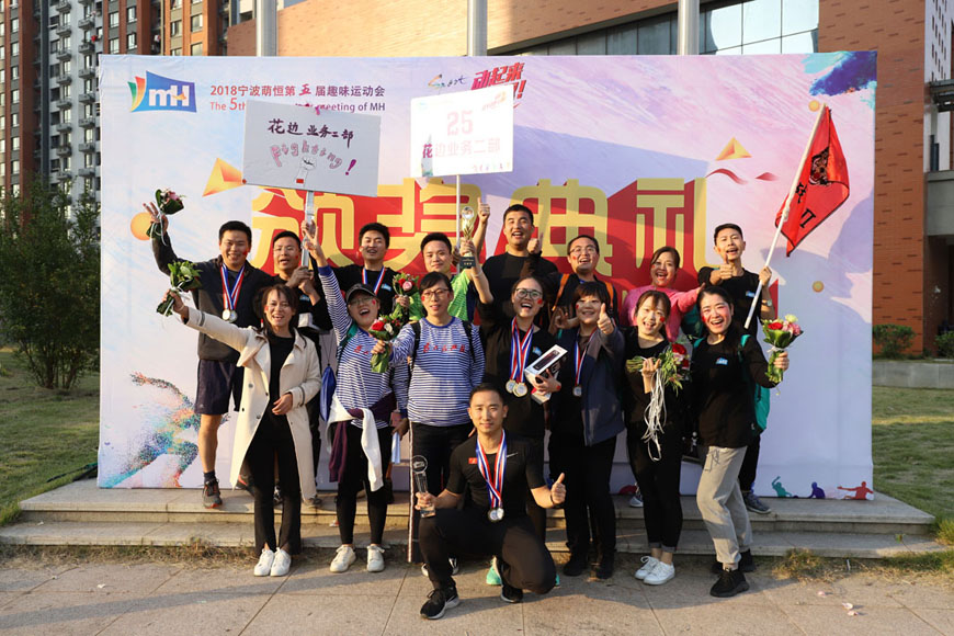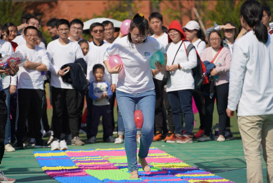 在歡快的運動員進行曲中,運動員們邁著矯健的步伐,高喊著催人上進又極富個性的口號,揮舞著隊旗、氣球、彩帶,把開幕式變成一片歡樂的海洋。六位啦啦隊員帶來一段活力滿滿、激情四射的啦啦操表演,更為熱鬧的開幕式再添一把火。在嚴總致辭,運動員代表、裁判代表宣誓后,萌恒第五屆趣味運動會正式開始。