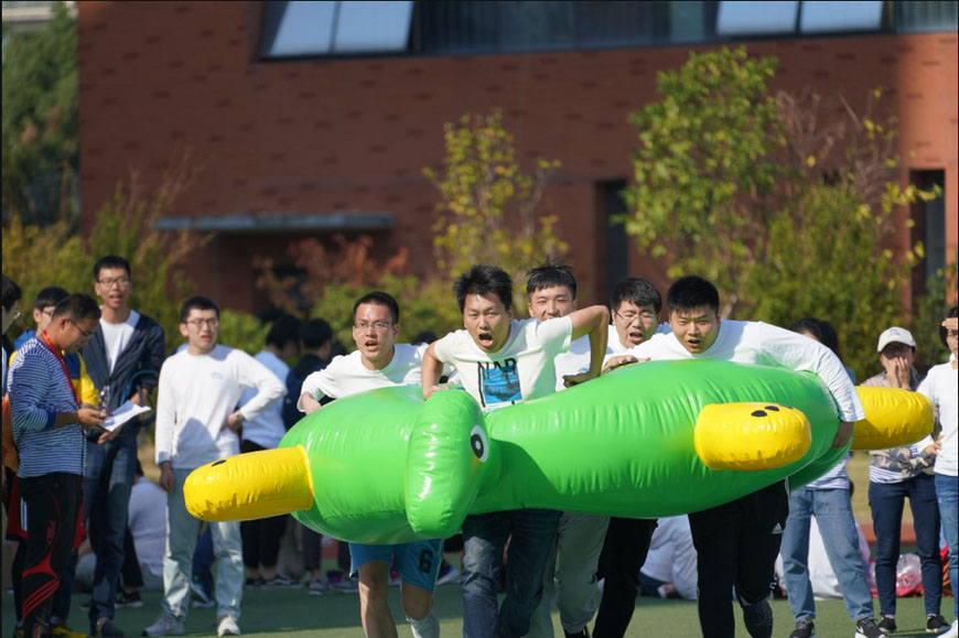 花樣接力,每一次擊掌的瞬間,給隊友的都是一種無形的力量;龜兔賽跑,在“1、2,1、2”的節拍中,人人爭做可愛的小兔子,蹦蹦跳跳向前沖。一根粗粗的麻繩,一頭牽著集體,一端系著榮譽,激勵我們永不放棄。