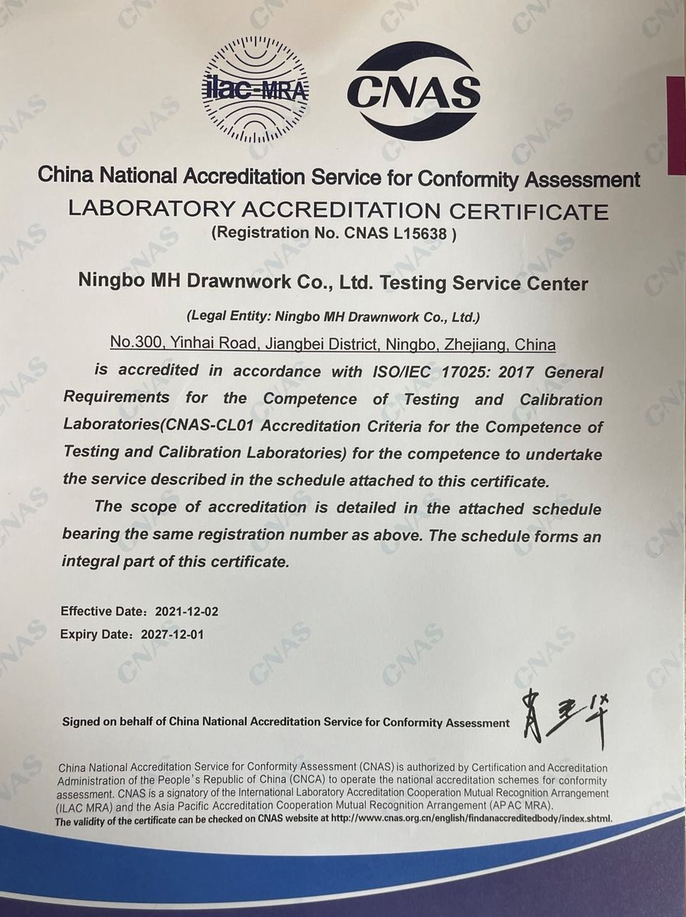萌恒抽紗有限公司檢測服務中心通過CNAS認證