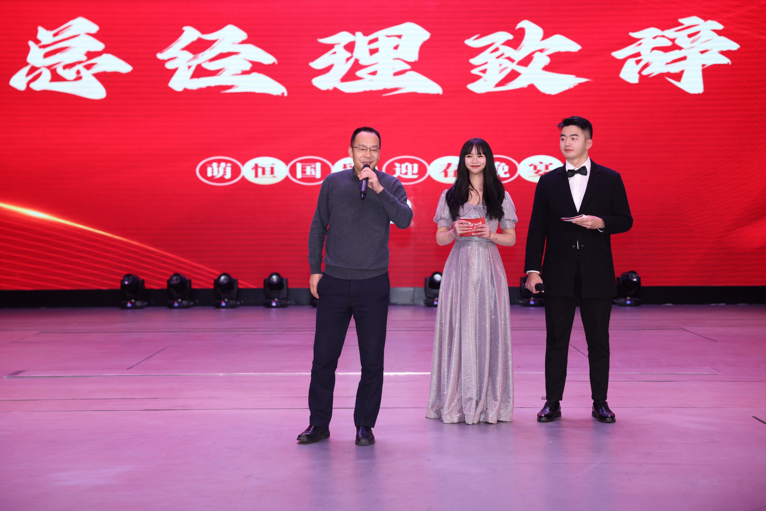 2月5日晚,“龍騰四海 共創(chuàng)輝煌”國貿(mào)新春晚宴在2024新春拜年視頻中拉開序幕。俊男靚女的主持搭檔,洋溢著青春與活力,讓人眼前一亮、耳目一新。晚宴伊始,國貿(mào)事業(yè)部總經(jīng)理陳總向國貿(mào)全體成員致以新春賀詞,為萌恒家人送上滿滿的祝福,并與全體同仁共同舉杯,慶賀新年。