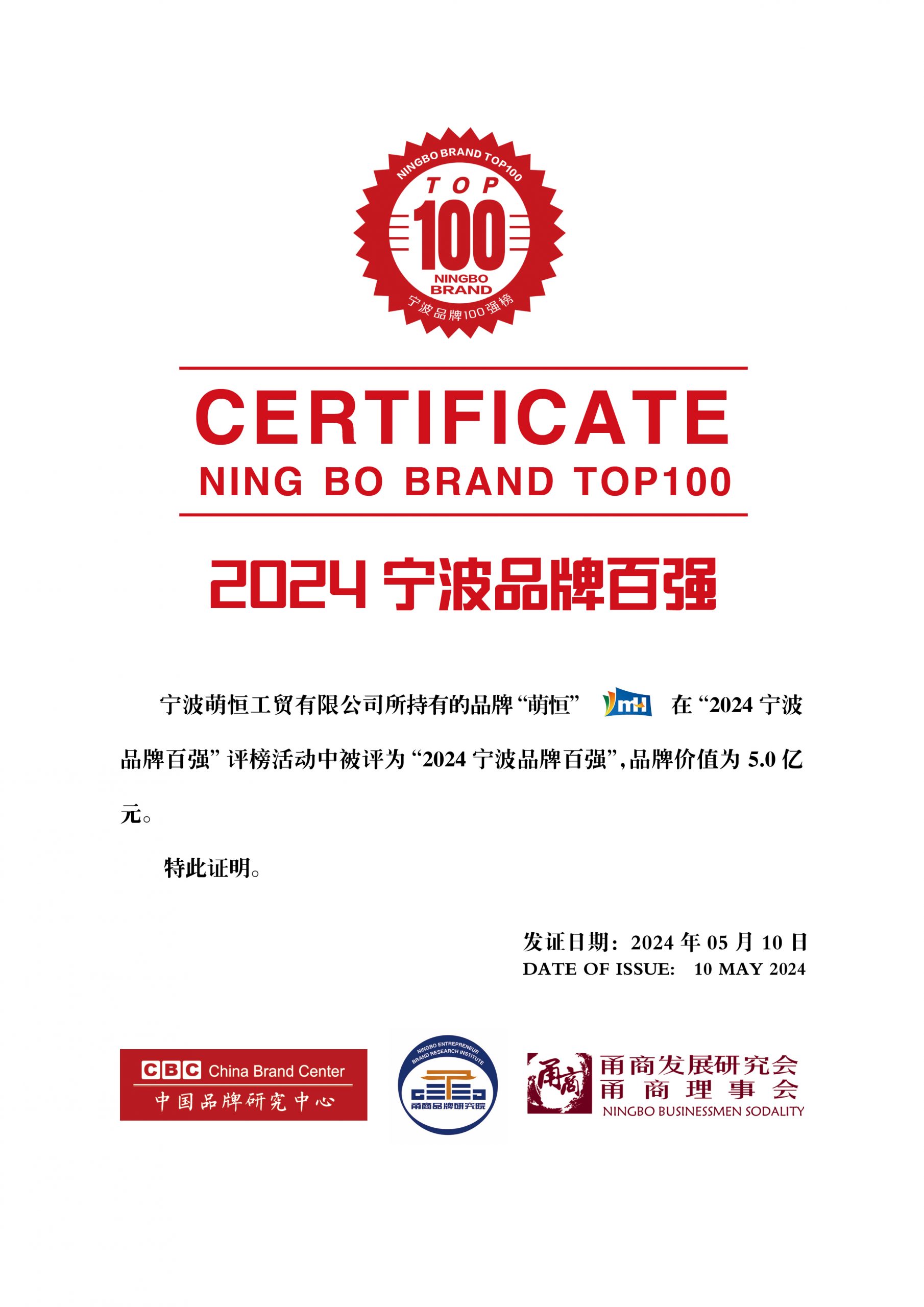 品牌活力 新質生長 | 萌恒榮登2024寧波品牌百強榜