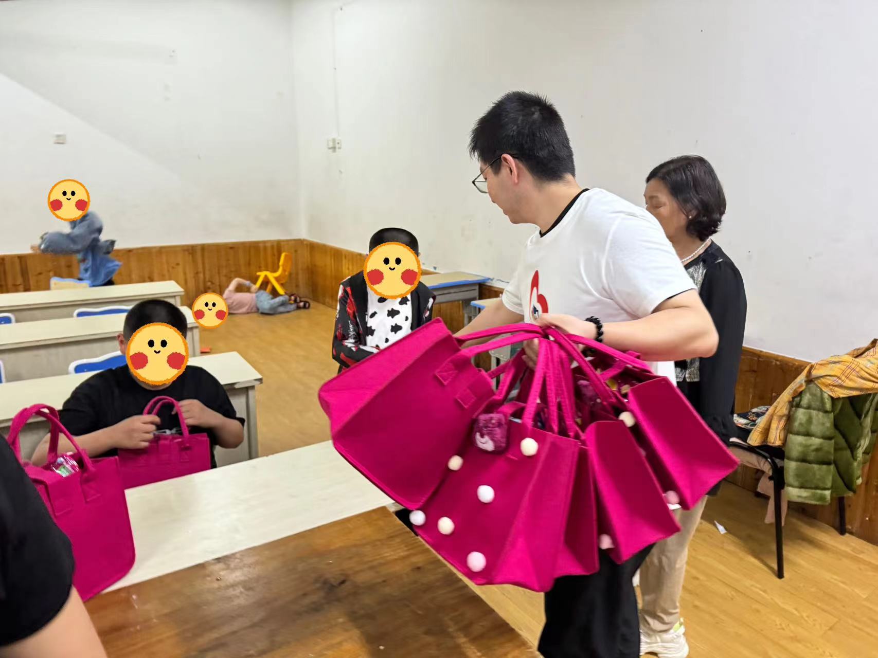 既然是兒童節,怎么能沒有美味相伴?花花綠綠的各色零食永遠是孩子們的心頭愛!我們的志愿者將精心包裝的零食禮包分發到45位孩子的手上,每個孩子的臉上都洋溢著純真的笑容,迫不及待地打開他們手上的快樂源泉,口中說著“謝謝阿姨”。看似簡單的一句謝謝,卻凝聚著老師們日夜付出的汗水和辛苦,也讓我們志愿者的心暖暖的。