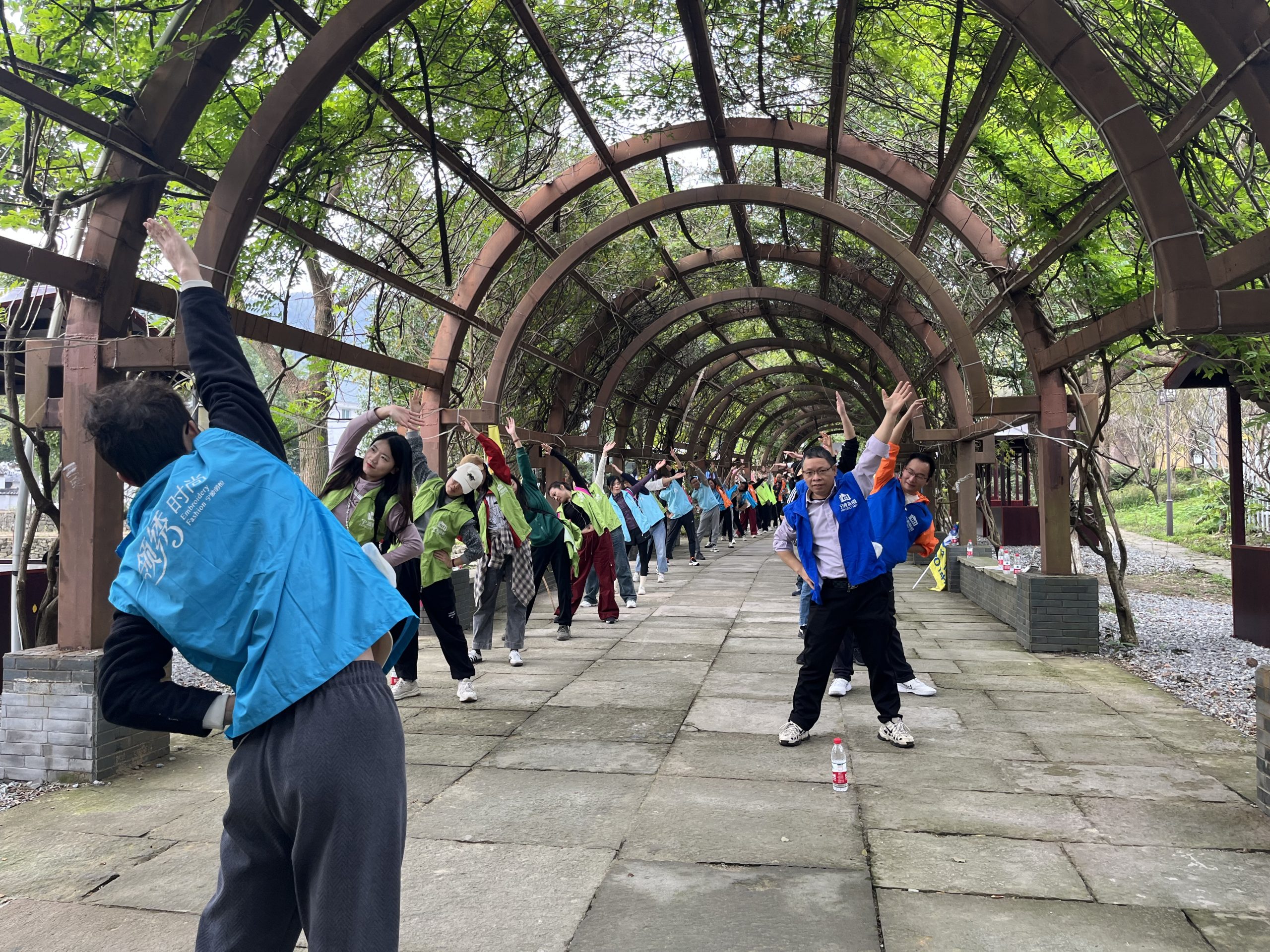 活動當天,天公作美,早上8時許,8支隊伍的80多名伙伴乘坐大巴車前往目的地。短短半小時車程,眨眼即過,8支隊伍順利集結,隨即展開了熱身運動。熱身完畢,大家在長廊集合拍照。這里,是2016年團建時留影之處,時隔8年,我們再次相聚,用鏡頭定格這美好的瞬間,也期待著下一個8年的重逢。