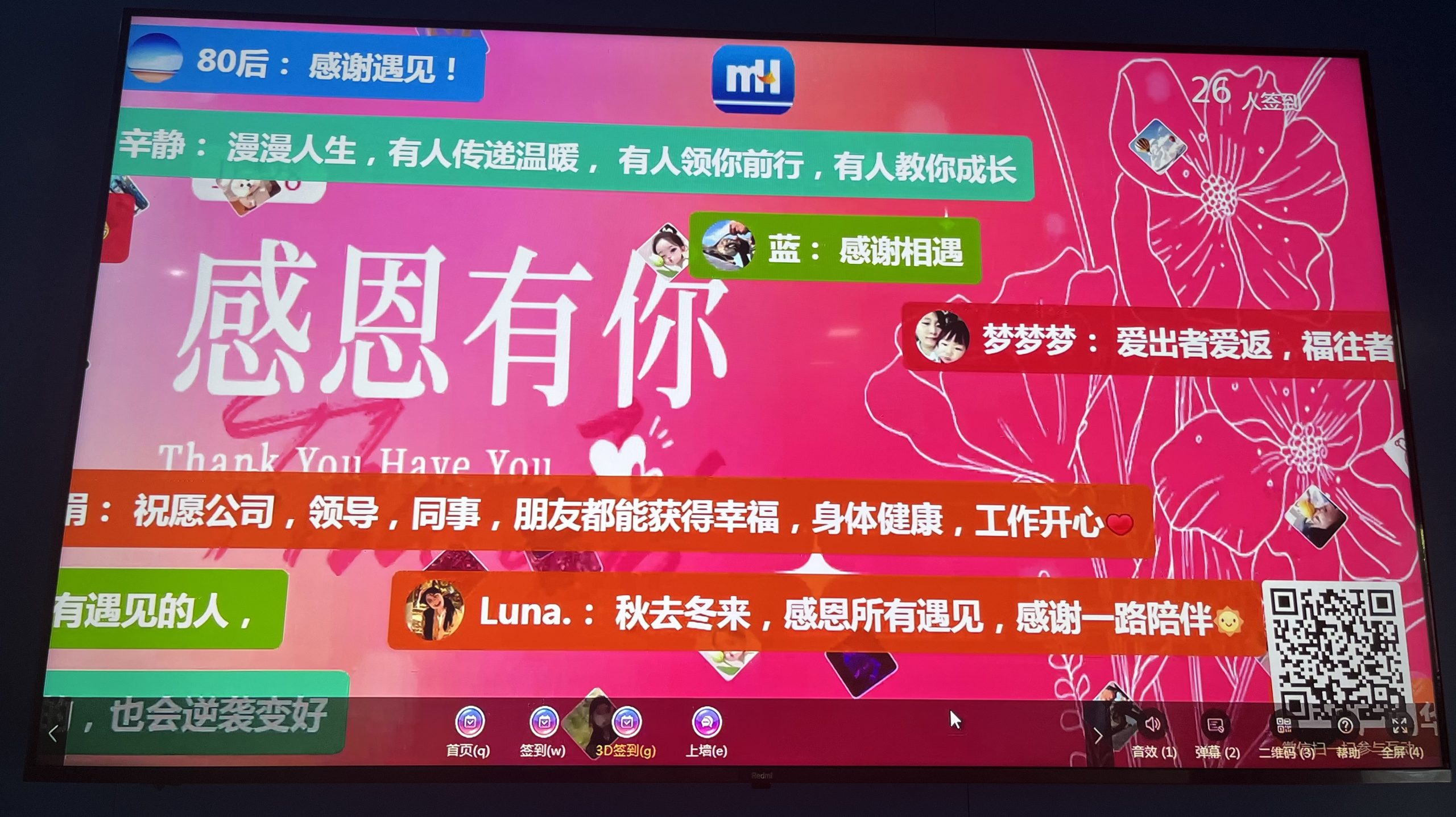 公司一樓大屏幕成為情感的交流站,小伙伴們在線上刷了一波“存在感”,有感恩同事的、感恩家人的、感恩客戶的……真摯的感恩語錄如涓涓細(xì)流匯聚其上。午休時(shí)分,大家興致勃勃地邀請感恩對象一同參與趣味游戲,彼此配合,歡聲笑語回蕩在公司每個(gè)角落,獲勝后那精美的禮品更是增添了幾分喜悅。感恩之心,溫暖而明亮,照亮你我前行的路。