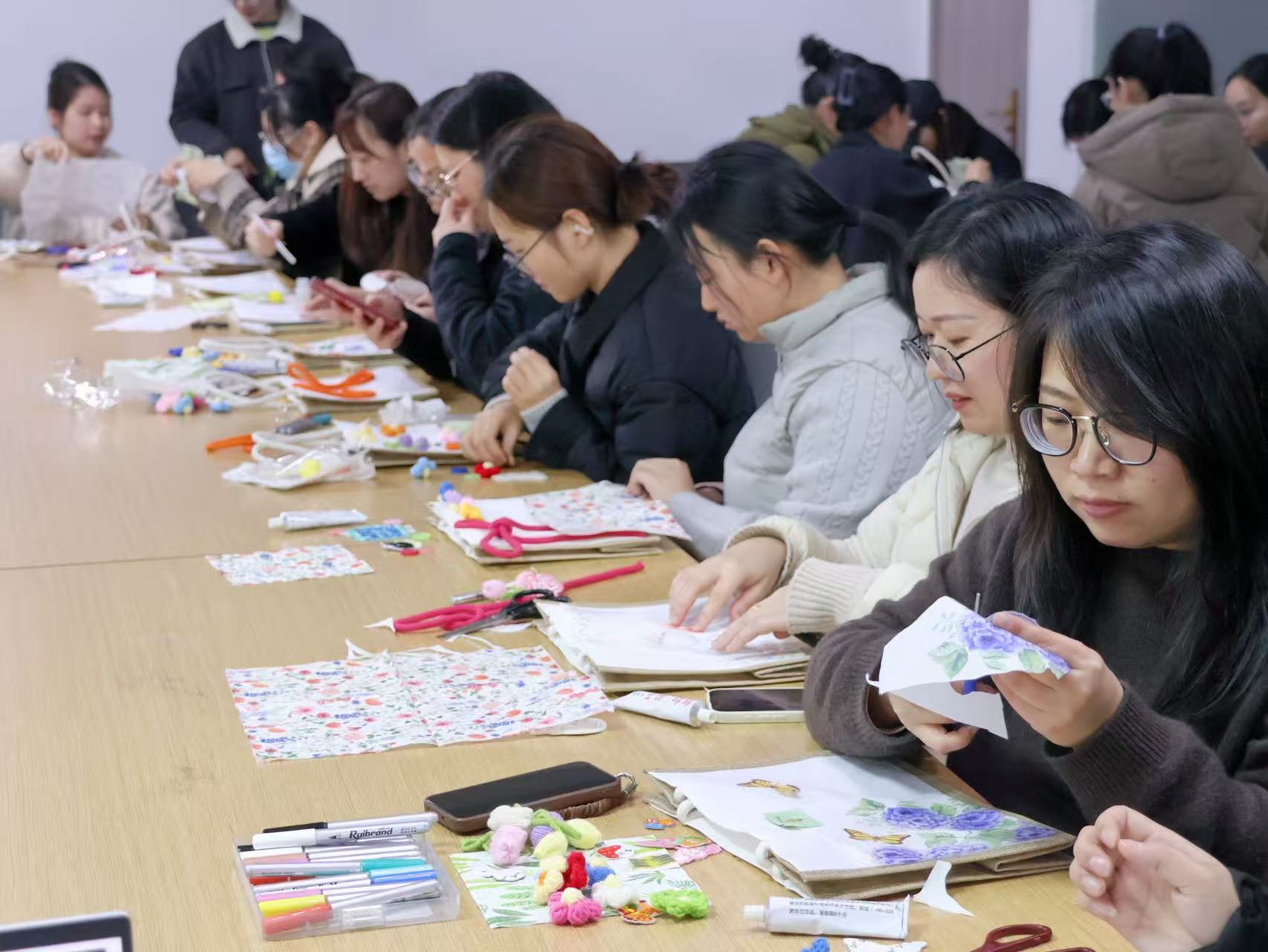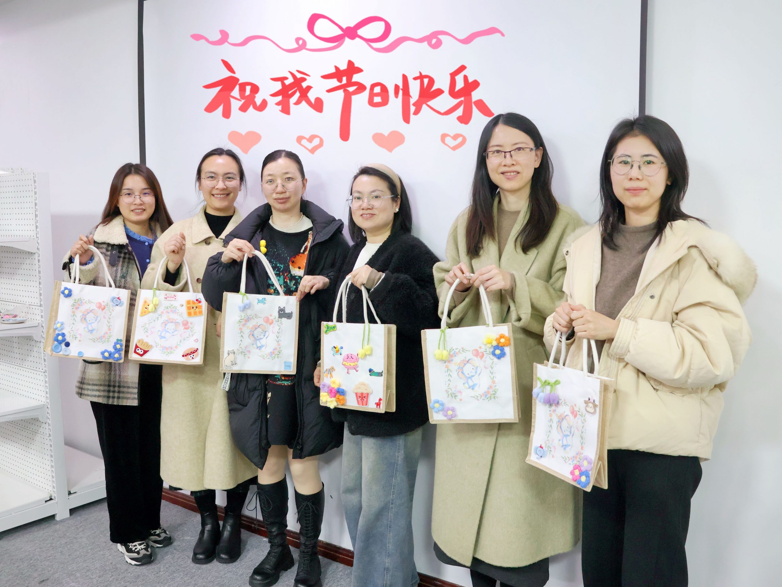 有人將春意貼滿包包,有人用毛線勾勒出自己的名字,有人巧用紐扣與畫筆做出創意花束……每一個帆布包都是獨一無二的作品,就像每一位女性,都擁有屬于自己的風格與光芒。