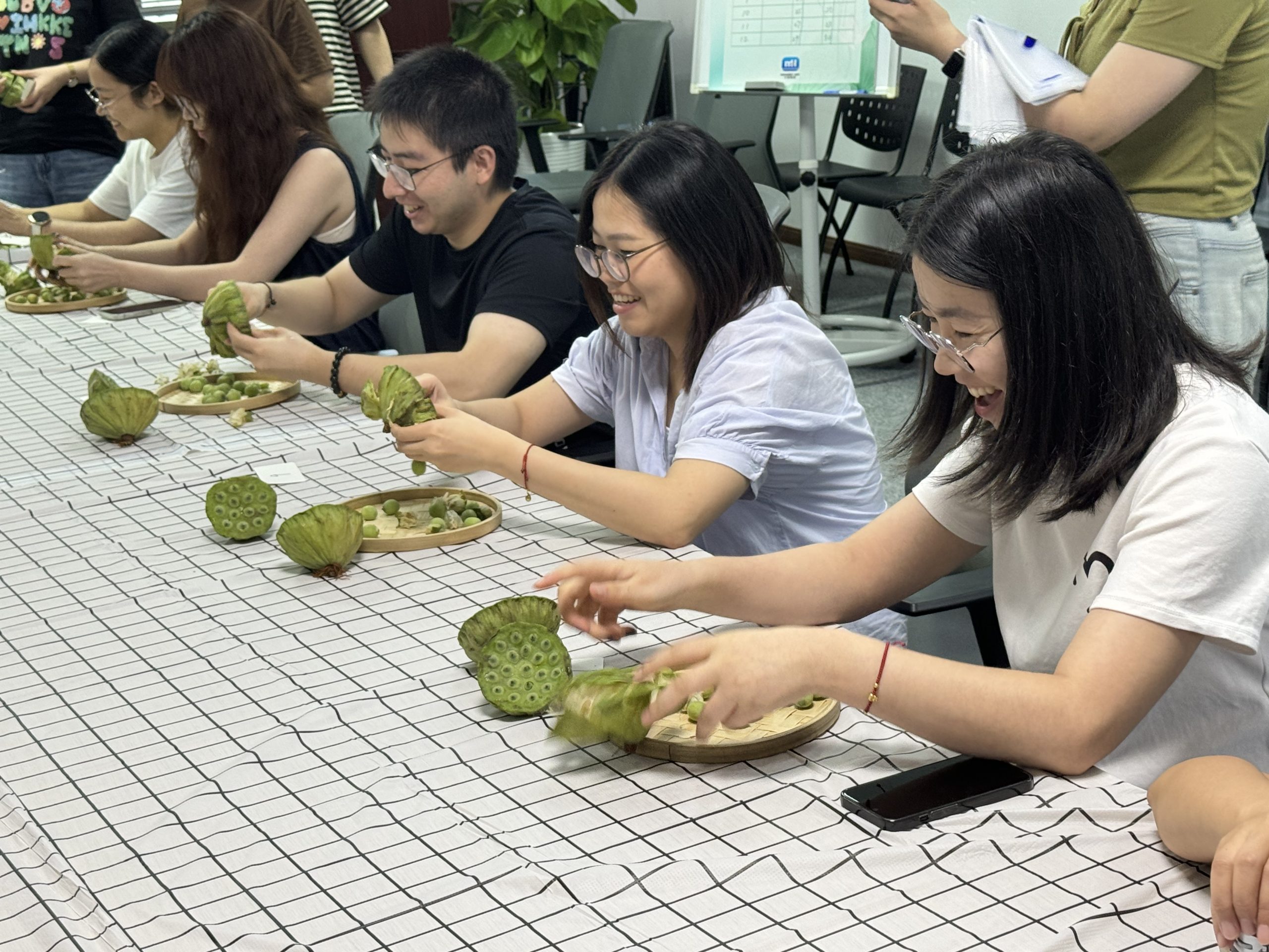 現場氣氛緊張而熱烈,他們的專注和拼勁也感染了身邊為他們加油助威的觀眾,最終財務部汪佳紅、物流單證部王慧慧獲得冠亞軍,財務部朱曉艷和樣品間魯菊并列第三名。比賽雖落幕,但歡快不停歇,大家分享著剝出的蓮子,清甜的口感頗受好評。此次活動不僅讓我們愉悅了身心,也加深了我們的情誼,期待下個夏天,我們再約!