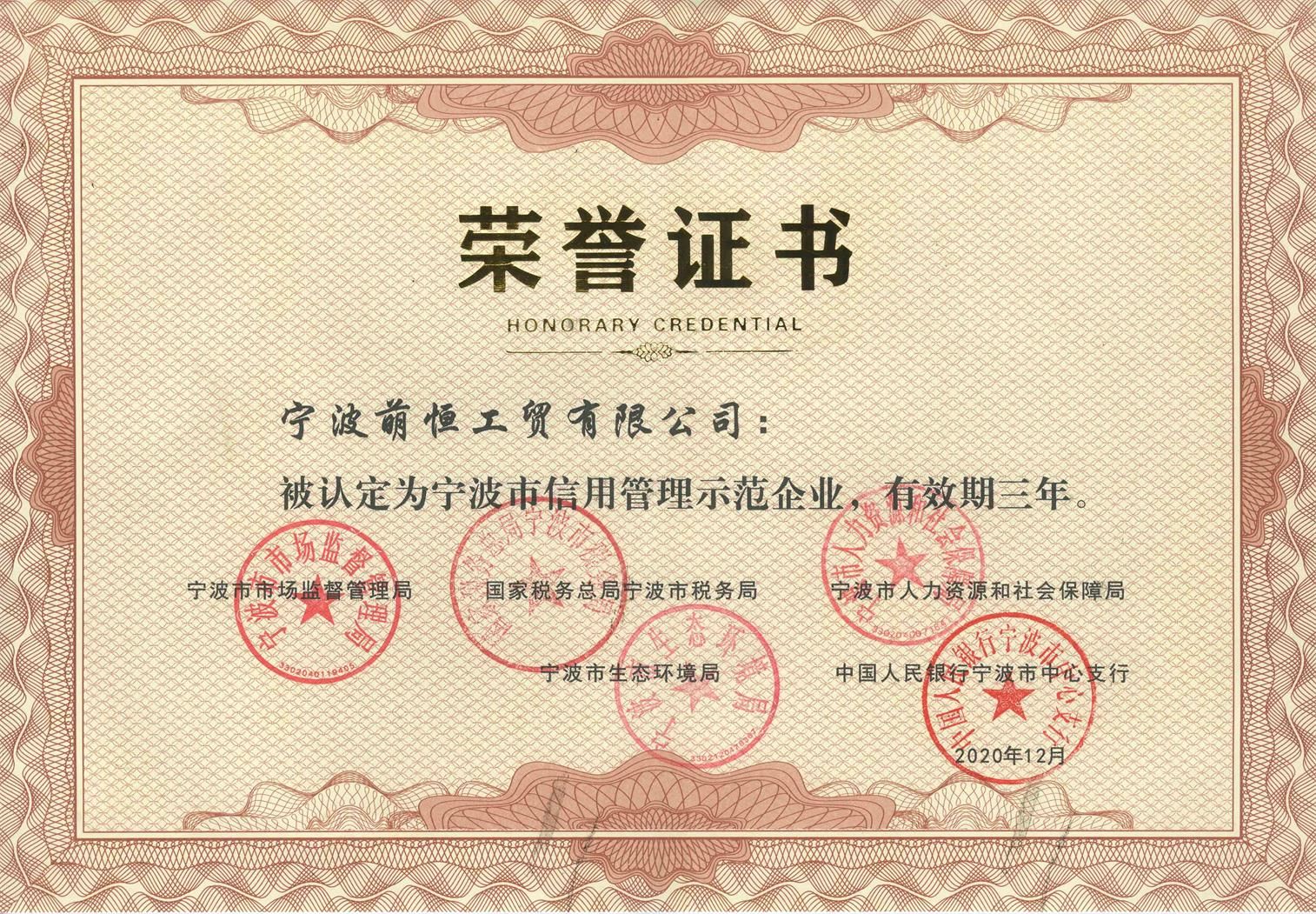 強化企業(yè)誠信意識 加強企業(yè)信用建設(shè) 萌恒獲評“寧波市信用管理示范企業(yè)”
