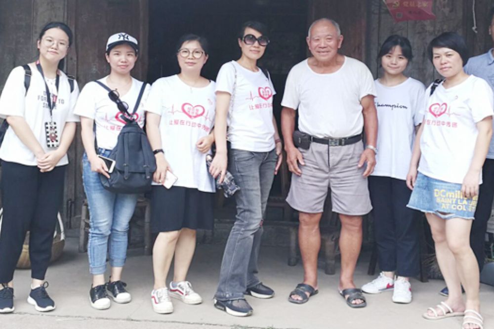 8月11日,參加愛心助學(xué)的義工們帶著善款和滿滿愛心分…